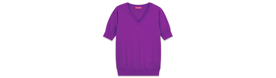 This round-neck short-sleeve cashmere sweater is a must-have for casual elegance. Made of 100% pure double-ply cashmere, it weighs 150g and offers exceptional softness and lightness. Ideal worn alone or layered under a jacket, it combines simplicity, refinement, and easy care. Machine washable cold or dry clean only.