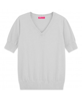 The light grey summer cashmere knit is the true charm of this piece. Fine, silky, yet resilient, it fits every situation: at the office with a light blazer, at home for ultimate comfort, or while traveling thanks to its featherweight feel. This elegant light grey cashmere top becomes a second skin you won’t want to take off.