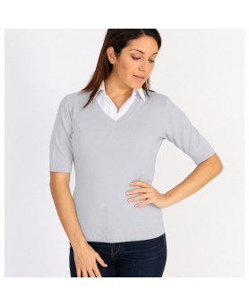 Whether you wear it as a light grey cashmere T-shirt for women or as a polished summer sweater, this model offers remarkable versatility. Perfect for active women who appreciate quality garments, it adapts effortlessly to all occasions. With this light grey lightweight cashmere sweater for women, you never have to choose between comfort and elegance.