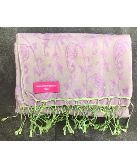 Cashmere and silk water pashmina shawl Embroidered purple and green