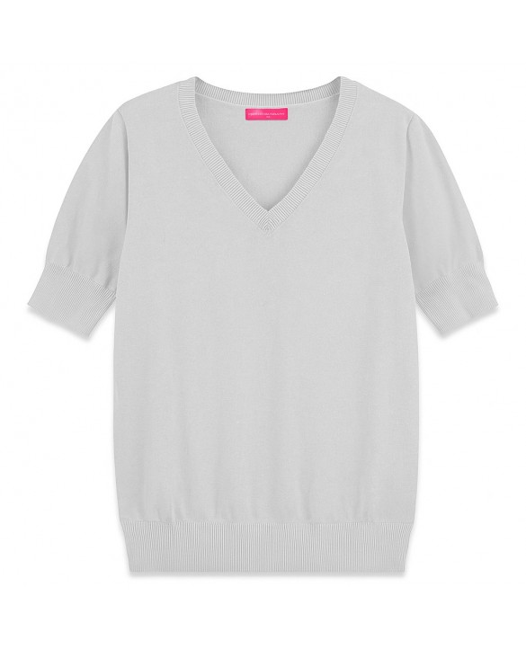 Questo maglione in cashmere a maniche corte grigio chiaro è pensato per offrire una sensazione di freschezza anche durante le giornate più calde. La lavorazione a doppio filo garantisce morbidezza eccezionale e permette alla pelle di respirare. Cerchi un maglione estivo in cashmere grigio chiaro che combini eleganza e praticità? Questo modello è perfetto per te.